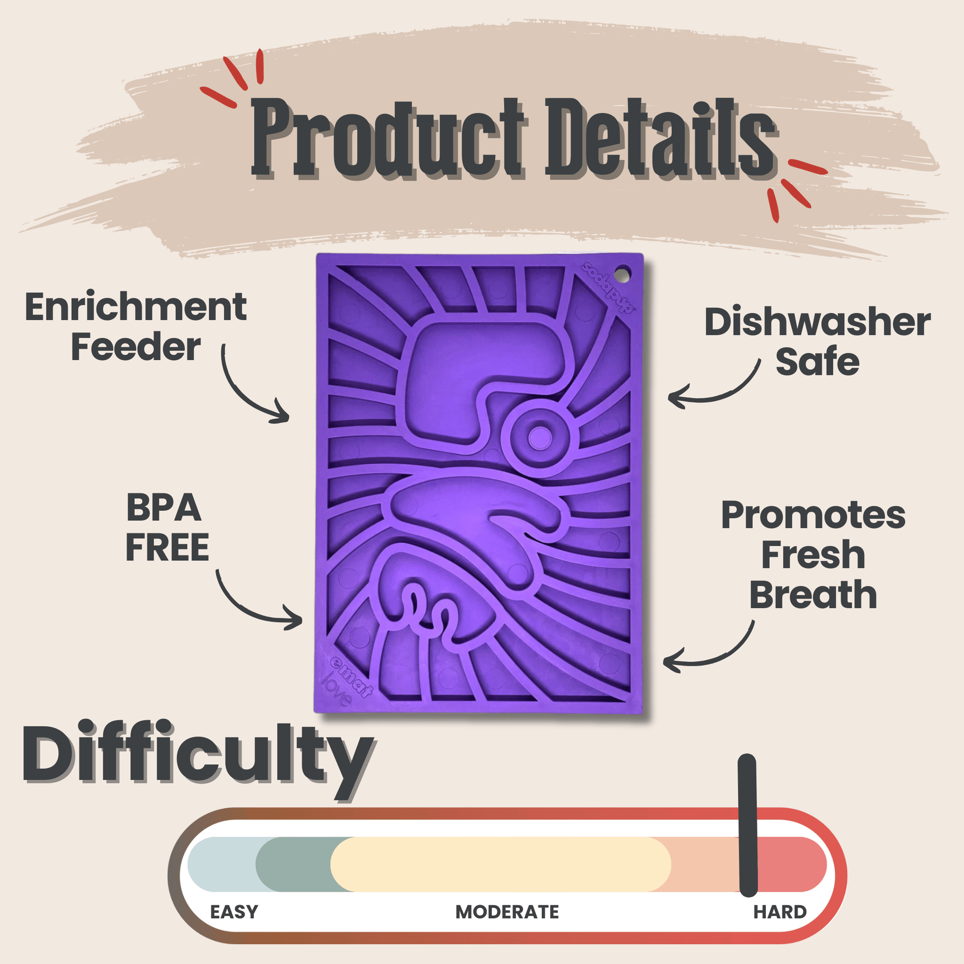 A lick mat is not a chew toy. Supervise your pet while using this enrichment licking mat. If a mat becomes damaged, remove it from your pet immediately.